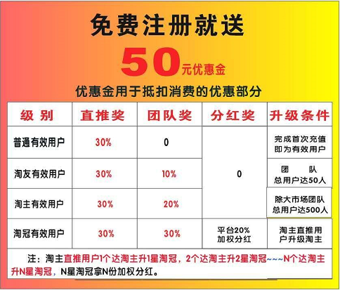 佣金制度很明显了,成为有效用户开始,每推广一个用户可以拿他充值购买优惠金的30%