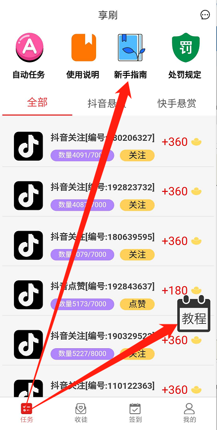 目前享刷APP只上架了抖音关注任务、点赞任务