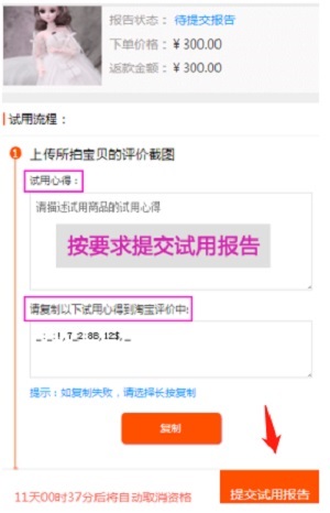 然后下面再填一下试用心得,所谓心得就是你的好评截图啦