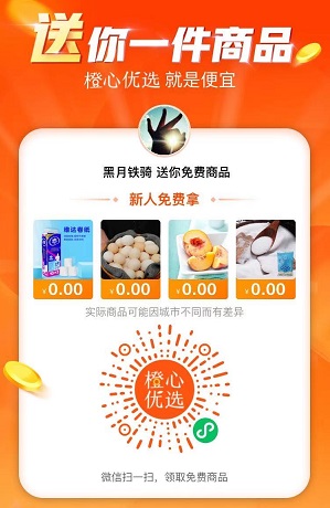 如果你没有使用过橙心优选的可以微信扫码打开小程序,新用户可以1分钱购买一些零食、纸巾、锅碗瓢盆等等一些生活日需品。