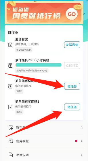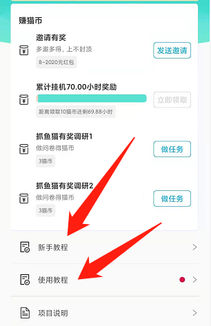 1、新用户下载抓鱼猫后先完成两个简单的问卷领6元!