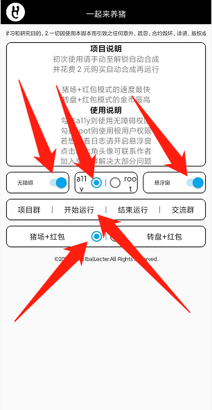 3、简单玩一下,先把小猪升到6级后即可开始使用脚本,一键挂机升级!