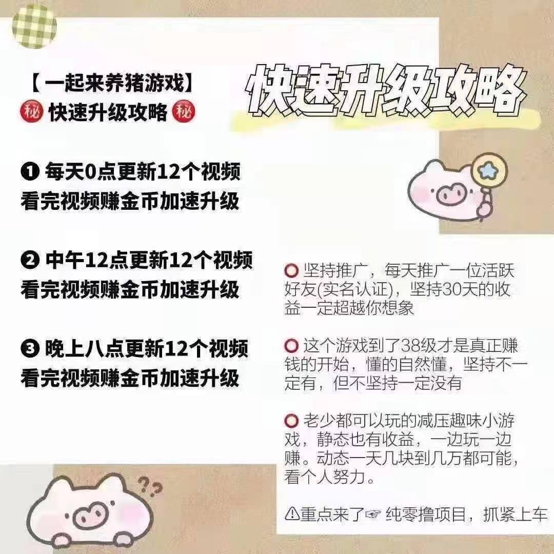 一起来养猪已上线很长时间了,为啥一起来养猪这款游戏还是那么火爆呢?通过一起来养猪APP玩游戏真的能赚钱吗?一起来养猪真的像朋友圈内宣传的那么赚钱吗?一天大几百的收益,天天都能提现几百块,今天老段就给大家分享一起来养猪的详细玩法~