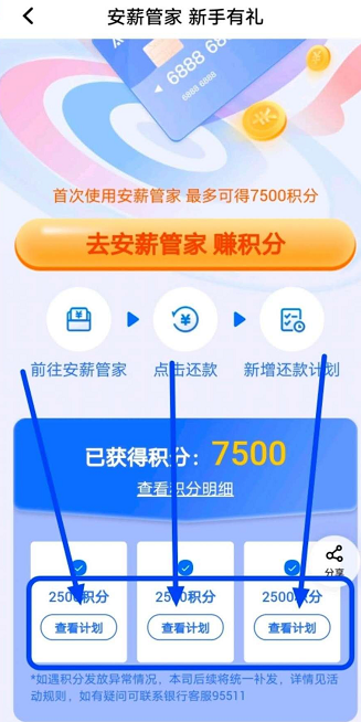2、随便设置下面三个还款即可,等积分到手或者E卡到手暂停计划就行,E卡是秒到的