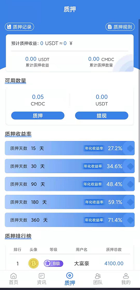 新增质押玩法,随着质押的天数年化率逐渐增长