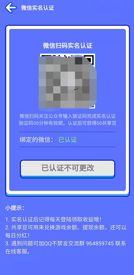 1、肯定下载注册APP啦,然后就是实名认证,实名认证非常的简单,就是关注一下公众号即可,个人中心→实名认证,然后输入自己专属的验证码,回复给公众号即可实名认证,实名认证可以获得50共享豆(参与分红),实名之后每天签到,不然体力下级为0会降低收益,由于我先前实名过了,就不给大家演示了