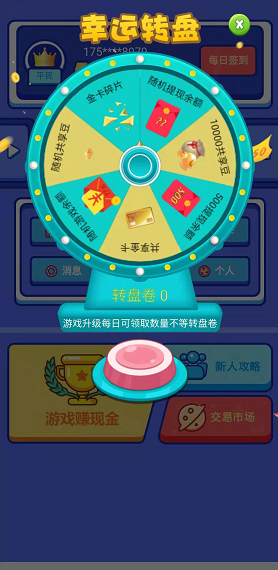3、幸运转盘,通过试玩游戏达到指定等级,每天可以免费领取数量不等的转盘券,等级越高获得的奖励越高