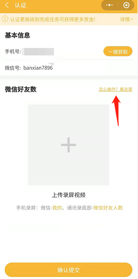 道生财app首页→认证成为会员取赚更多的钱→拉倒最下面就可以找到去认证了,需要录制视频的认证,在微信我的界面停留2秒,然后换到通讯录拉倒最下面看见总人数也是停留2秒,最后就提交视频审核就好,如果不懂认证界面有个怎么操作?看这里有官方的详细教程