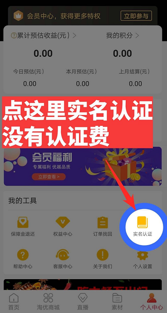 2、在个人中心完成实名认证,免费认证,无需认证费用。