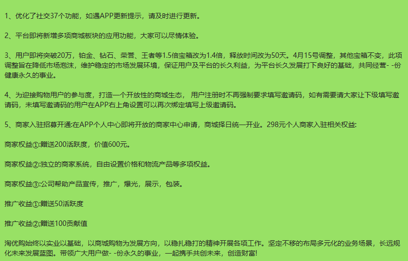 淘优购目前有个限制,直推满80人后需要联系客服升级为200人,满200人后联系客服升级500人.....