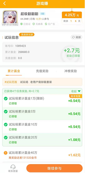 游戏赚APP非常的简单,不需要实名,只需要一部手机和一个实名的微信号就可以赚钱,并且我们试玩赚的钱都是实时到余额的,并且提现也是秒到的账的哦
