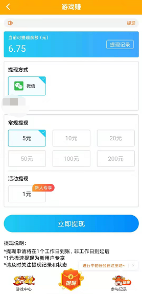 大家可以把闲时间利用起来,充实自己在娱乐的同时还可以赚个零花钱它不香吗?,并且提现还是秒到账