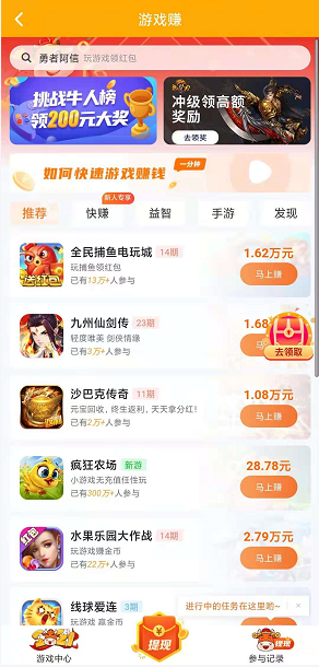 比较适合玩家好赚钱的手游莫过于游戏赚APP了,游戏赚APP上有近150款手游,各种类型的都有:页游、休闲益智、冒险、闯关等等全都拥有,并且每款游戏都有高额的现金奖励。