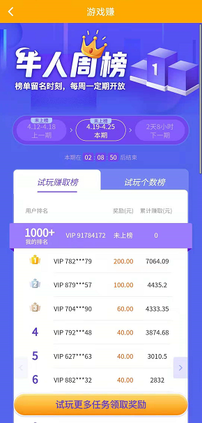 如果想获得更高的试玩奖励可以选择开通VIP,开通VIP可以把试玩收益提高20%。