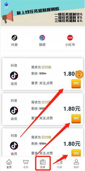 水滴抖音点赞提交截图就能赚钱?这个也是百分之百的ZJP来的,和昨天跑的双赢广告一模一样,里面的VIP任何的都不要充钱,咱们每天完成一个任务1.8元就好,满10元就可以提现,每天1.8元6天就可以提现了,再重申一遍不要充钱,零撸就好了,我已经告诉你是ZJP了,还充钱你是啥?妥妥的韭菜