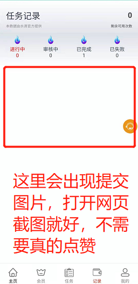 领取任务之后点记录就可以看见刚刚领取的任务了,打开链接抖音作品链接直接截图即可,不需要真的去点赞啥的,然后提交即可,由于半仙测试的时候忘记截图了,大家点击记录就可以看见了