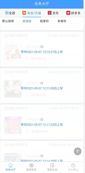 超人气可以接TB、TM、JD、PDD三大电商平台的,限时上架任务,单量也不是很多,晚了可能就每单做了,任务佣金也是2-20元左右,PDD单价格可能会低一点
