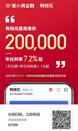 有钱花是百度旗下的贷款平台,日利息低至万分之二,也就是说借款1万元,一天的利息2元,最高额度20万元,百度公司大平台,对于需要贷款的朋友来说,找到一个靠谱的平台、利息低的平台不容易,有钱花既能安全有保障,利息还低,非常适合手头急用钱的朋友,有的时候不好意思向身边的亲戚朋友开口,还是自己解决稳妥点!