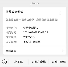 一般能出一单就是几百上千了,有这类型人脉的,又或者碰到朋友亲戚需要的,我们可以利用好推有钱的赚一笔佣金,利人又利己!