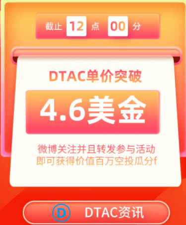 DTAC百万空投微博专区,关注微博博主,转发置顶帖子并且@两个好友,但是半仙填写信息的时候有一行需要@三个好友,大家转发的时候索性就@三个好友就好了,完成任务填写Heco钱包地址即可(大家记得添加DTAC币,不然TP钱包是无法看到你获得的空投的),此次空投200万DTAC,有参与玩家共同瓜分,目前DTAC的价格突破了4.6美元,价值30元