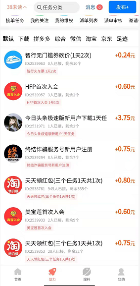 可以看到任务是平台非常的多,国内的电商平台上面基本上都有,而且任务也比较多,单价也是比较高的。