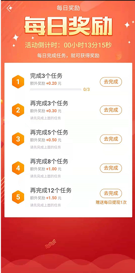 趣闲赚app新人完成新人任务奖励3元(仅限新人,只有一周时间,过期就没了),每日奖励则是每日都有,但是每天晚上12点重新计算,同时还有分红,通过完成任务可以获得积分分红,完成的任务越多则分红就越多,这些都是额外的奖励,不拿白不拿
