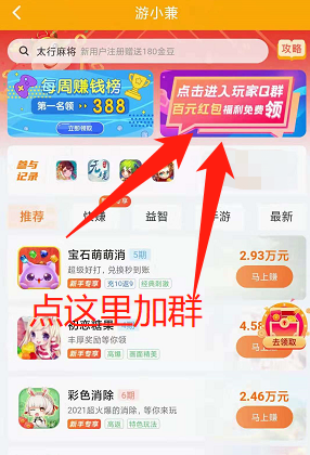 下载游小兼App后,可以添加App内的玩家群,加入玩家群可以参加游戏现金大奖活动的同时,还可以跟群里的游戏大神们讨论如何快速玩游戏赚钱,哪些游戏比较好赚钱。