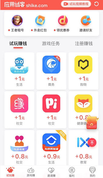 应用试客又名试客小兵,也是老牌的苹果手机赚钱软件,单价也是非常之高,应用试客主要是新用户,新用户的任务奖励高,任务多,新用户还有较高的奖励,新人任务做完就可以卸载了,后期老用户可能会任务比较少