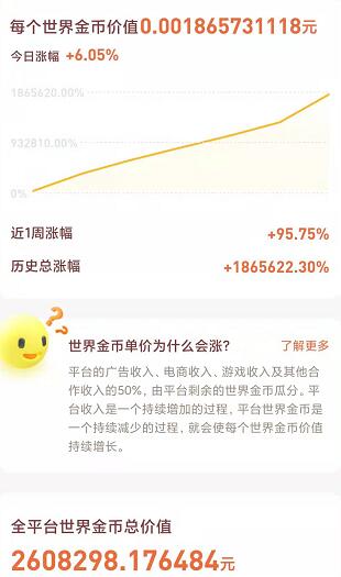 奖券世界中的世界金币起始位0元,近一周涨幅95.75%。世界金币没有挖矿,没有泡沫,金币的价值是所有用户通过广告创造出来的收益,最后进行瓜分的方式。