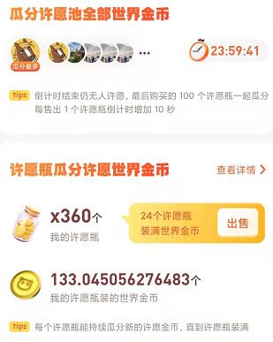 需要说明的是,世界金币应用许愿池玩法,持续购买许愿瓶随着时间越久,可以买的许愿瓶就会越多。大家一定不要中断购买。越到后期许愿瓶装的世界金币就会越多,非常超值的玩法!大家一定要把握机会哦!