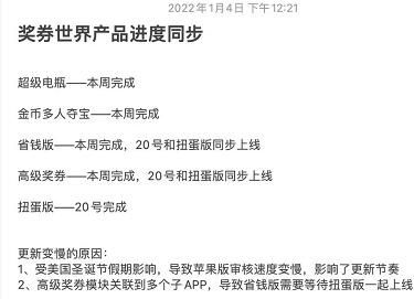 2、高级奖券模块关联到多个子APP,导致省钱版需要等待扭蛋版一起上线