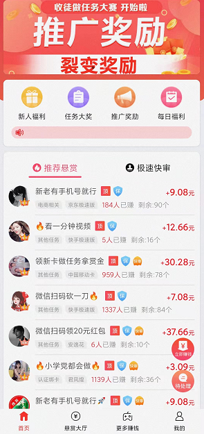 废话不多说,直接上干货,过年了咱们直接玩正经稳定的赚钱软件,对于这方面直接从悬赏平台、游戏试玩平台入手,目前这两大板块也是最多人玩,收益比较理想的!