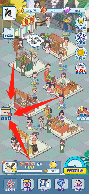我们主要就是通过升级摊位来赚取金币,金币可以增加小吃街的繁荣度,而繁荣度可以获得小吃,小吃可以直接售卖获取对应的现金奖励!