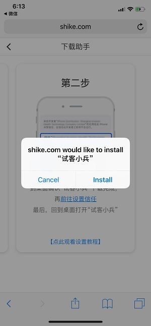 6、下载过程跟安卓手机不同,会弹出类似下方的英文弹窗,点击“install即可”,代表安装。