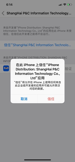 7、安装完成即可在桌面看到试客应用,但这个时候是打不开的,需要在手机:设置-通用-设备管理,找到企业级应用,选择信任即可。