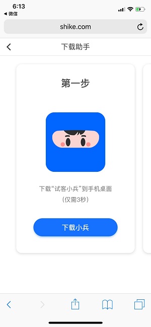 5、下载“试客小兵”到手机桌面,点击下方按钮即可。