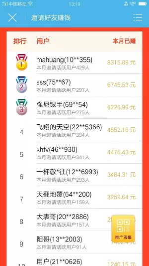 这个app跟大多数app一样,可以进行推广,邀请好友注册,邀请一位他完成新手任务你就可以得6元,后面他做的任务你会有一部分佣金,这相当于双方互利。