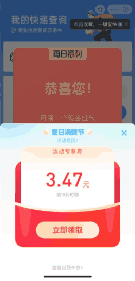 正文 支付宝每天领取三个消费红包 半仙 V网站编辑 /2022-07-31/1.68 K阅读/0评论 0731 支付宝夏日消费券,每天都可以领取三个红包,这些红包可用于实体店扫码支付,当然也可以用于充话费,每天都可以领取一次哦。1、支付宝直接扫码2、支付宝搜索“快递有礼”以及“小米有品”分别可以获得一个红包3、这些红红包是可以叠加的,如果用于实体店扫码,如果是别人扫你,出示付款码自动使用,你扫别人也是会自动使用的;如果是想要充值话费的话,支付宝首页搜索“苏宁易购”→搜索“10元话费”红包是可以直接抵扣充值的。