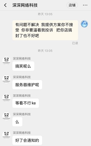 此后的3、4个月时间里,小程序断断续续续打不开很多次,每次持续一天或者两天以后都能恢复。最近一次大概在一周前再次出现小程序打不开的情况,联系卖家,卖家说他明天看看,然后明天后天大后天一点动静没有。小编经过检查发现其实就是域名证书的问题,我要求免费帮卖家维护服务器(因为此时我已经发现卖家就是个水货,很多地方还不如我),卖家表示不方便。我再多说几句的时候,卖家就很不耐烦,让我等他通知,此时距离小程序打不开已有一周了。总之,卖家就是各种拖,口头答应的很好,就是不给你解决。目前正在联系淘宝客服投诉中,虽然该店铺相关产品已下架,而且本次交易也有好几个月了,但还是希望能够对卖家有所处罚,实在是太气人了。