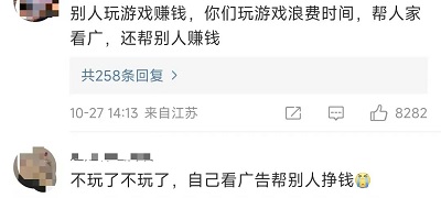 记得游戏出来后,无数人卡在第二关,陷入玩不过-看广告-还是玩不过-接着看广告的循环中,玩家们对这个游戏是又爱又恨。一边吐槽游戏难一边看着广告获得更多游戏机会。