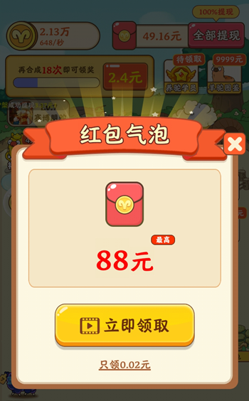 我是农场主是一款合成赚钱的游戏,好久没玩过合成升级类的游戏了,这种游戏很简单,2个相同等级的动物可以合成一个高等级的动物,然后每升一级就可以获得一个红包,那么我是农场主游戏赚钱是真的吗?能提现吗?