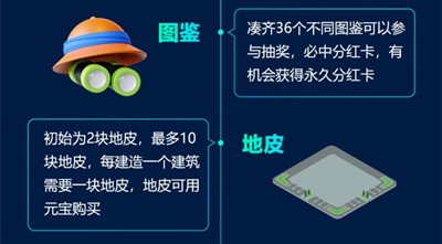 简单来说就是每个建筑升到6级就可以抽奖,金币可以用来升级,元宝越多,金币上限越高,增长速度越快,抽奖有机会获得元宝、红包、金币、图鉴,元宝可以交易,红包可以提现。