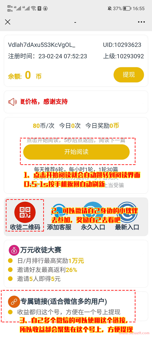 3、最下方,自己多个微信的可以使用这个链接,所以收益都会聚集在这个号上,方便提现。