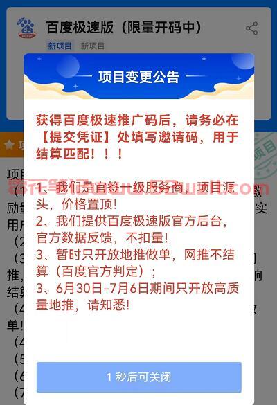 1、百度极速版测试上线,市场空白、操作简单!我们是官签一级服务商,项目源头,价格置顶!欢迎各渠道报名!