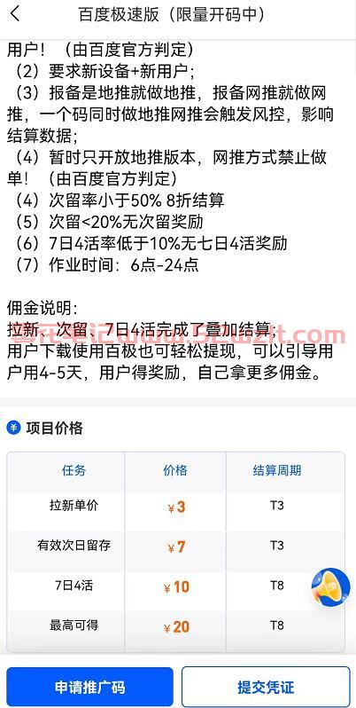 百度极速版推广项目要求: