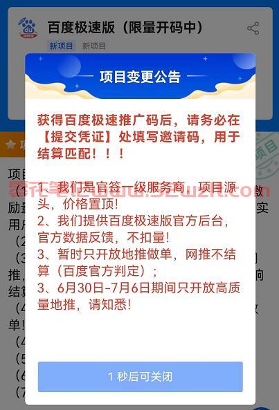 百度极速版拉新价格多少钱一个人?如果要说近期地推拉新项目有什么新的风口和动向,那么各位大佬可以关注一下百度极速版的推广,绝对是今后几年的明星项目,目前市场一片蓝海,目前这边对接全国一级服务商源头首码,价格置顶!