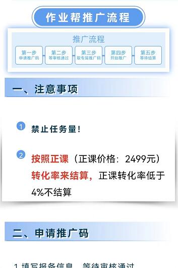 首先我们通过平台找到作业帮项目,然后申请报备推广码等待审核通过;